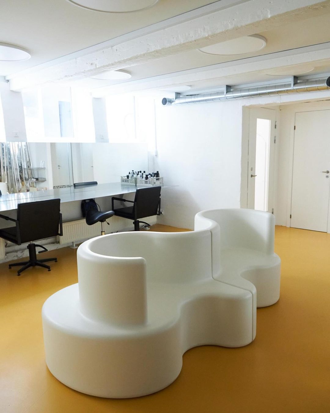 La silla de peluquería, con su diseño sencillo, también ofrece varias ventajas prácticas. Un asiento tipo silla de montar acolchado y cómodo en cuero vegano proporciona confort y estabilidad. El armazón de aluminio es de buena calidad y las ruedas negras, resistentes al pelo, se deslizan como un sueño.